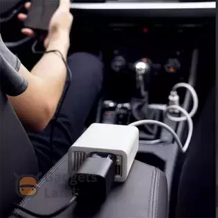 Устройство подключается к 12-вольтовому разъему прикуривателя, что обеспечивает его совместимость с большинством автомобилей. Оснащается разъемом USB Type-A с поддержкой быстрой зарядки QC 2.0 и QC 3.0. Есть мультирозетка на 220 Вольт с мощностью до 100 Вт для подключения техники с европейской и китайской вилкой. Шум от работы вентилятора для охлаждения не превышает 42 дБ.